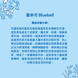 慈心花香氣充滿振奮人心的花香與甜美氣息,散發著新鮮檸檬、清雅紫羅蘭和三色堇的香調,這是一場春日花園的夢幻漫遊,完美融合了清新檸檬、優雅紫羅蘭和柔美三色堇的香氣,帶來一份獨特的感官享受。花香悄然綻放,帶來一抹柔和的優雅,彷彿置身於微風輕拂的花田中。三色堇的基調則為整體香氣增添了細膩的層次感,淡雅而不失溫暖,猶如春光中輕柔的陽光。